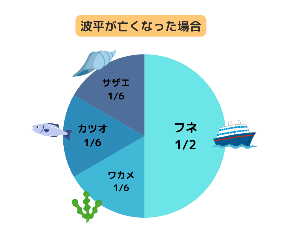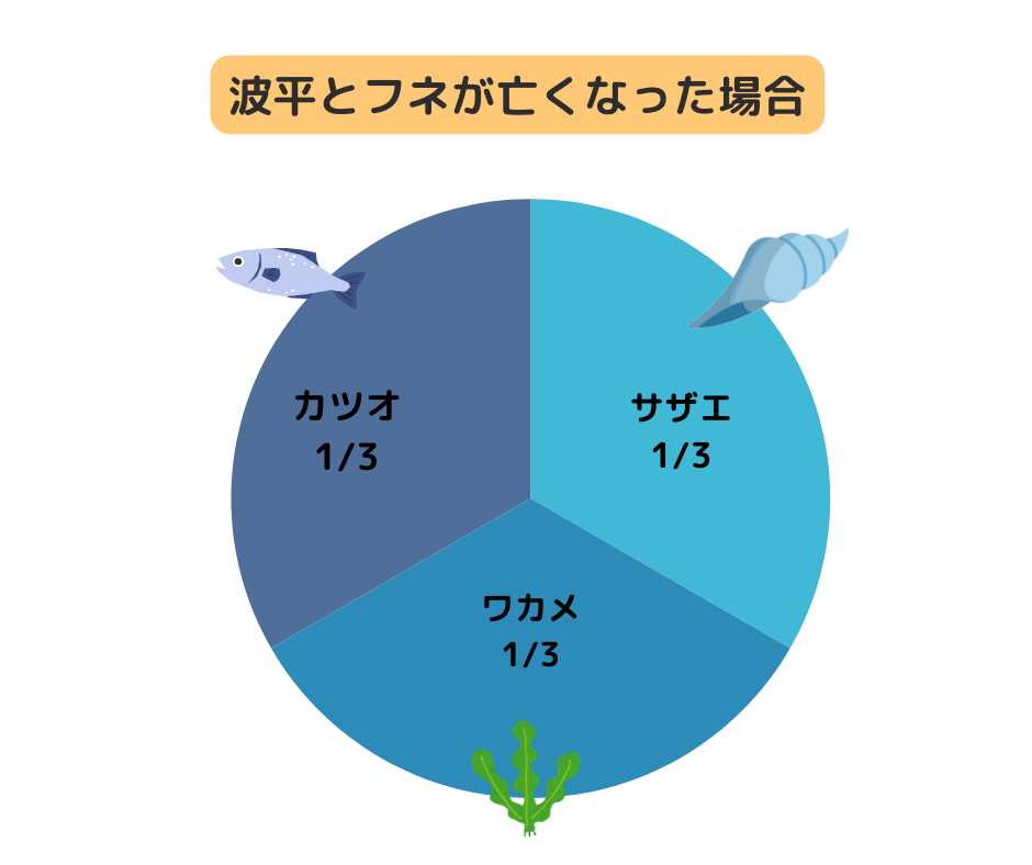したがって、フネが1/2、サザエ・カツオ・ワカメがそれぞれ1/6ずつ相続する形です。