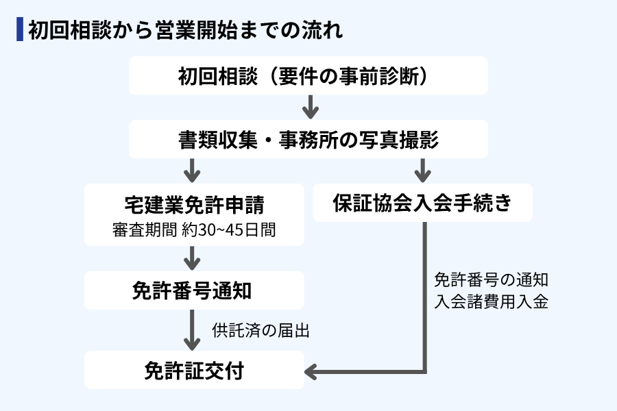 保証協会の加入手続きもセットで行政書士が代行する場合が多いです。スケジュールも含めて依頼前に確認しておくとよいでしょう。