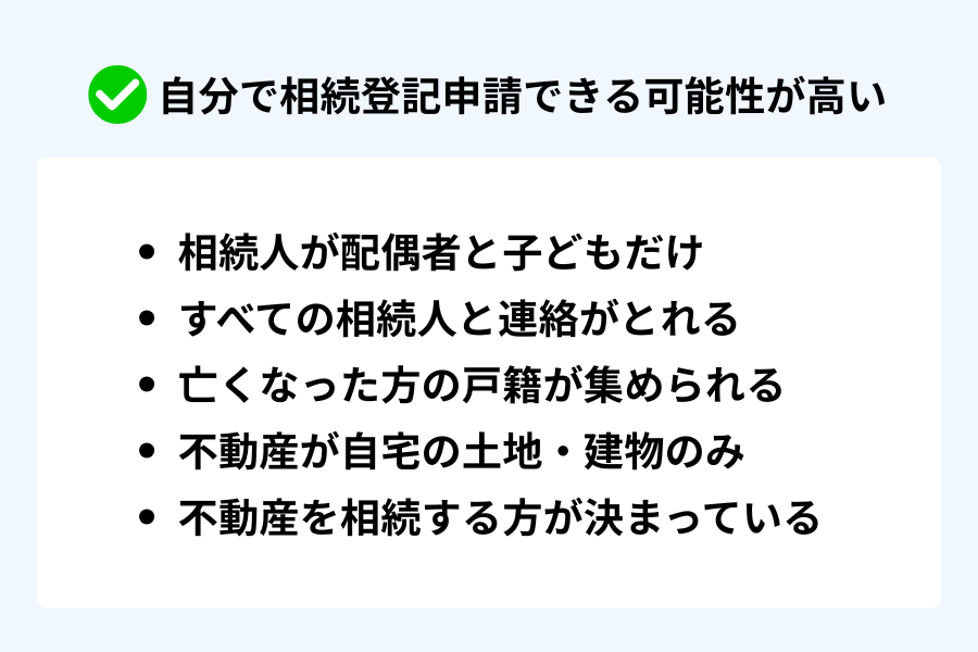 自力で相続登記申請できる可能性が高いケース